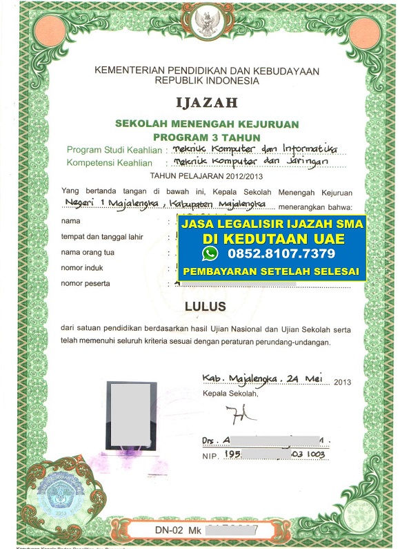 Legalisir Ijazah SMA / SMK di Kedutaan UAE digunakan untuk keperluan Melanjutkan Sekolah atau ingin Bekerja di Dubai, Abu Dhabi, Sarjah, Fujairah, UAE (Uni Emirat Arab).